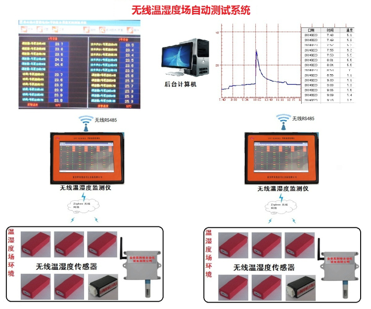 該系統(tǒng)主要用于恒溫恒濕箱(房)、高低溫試驗箱,熱處理爐,老化試驗箱,干燥箱,培養(yǎng)箱,水泥養(yǎng)護(hù)箱(室),鹽霧腐蝕試驗箱,恒溫水/油槽,冰箱、冷藏庫,糧庫,大面積恒溫恒濕房間,箱式電阻爐,高溫定炭爐……等溫濕度試驗設(shè)備的溫濕度參數(shù)的檢定或校準(zhǔn),也可對設(shè)備的控溫偏差、溫度場、濕度場、均勻度、波動度等進(jìn)行自動測試與分析。該系統(tǒng)由測試軟件、智能無線傳感器(包含無線溫度傳感器和無線濕度傳感器),無線溫濕度監(jiān)測儀組成。無線溫濕場測試系統(tǒng)同時使用了ZigBee無線通訊技術(shù),不僅解決了用戶接線麻煩的問題而且性能穩(wěn)定可靠。
